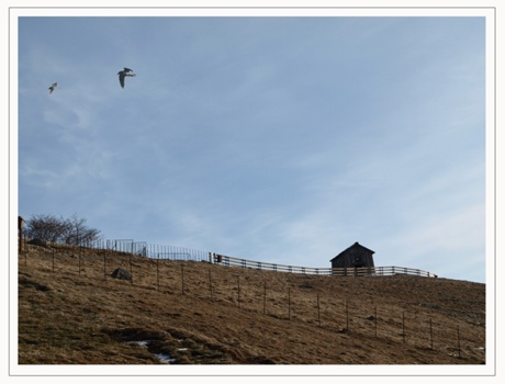 그리도 많이 왔다고 소문난 눈이 여기 양 때 목장에는 거의 녹았어요. 양지 쪽이라 그런가봅니다.